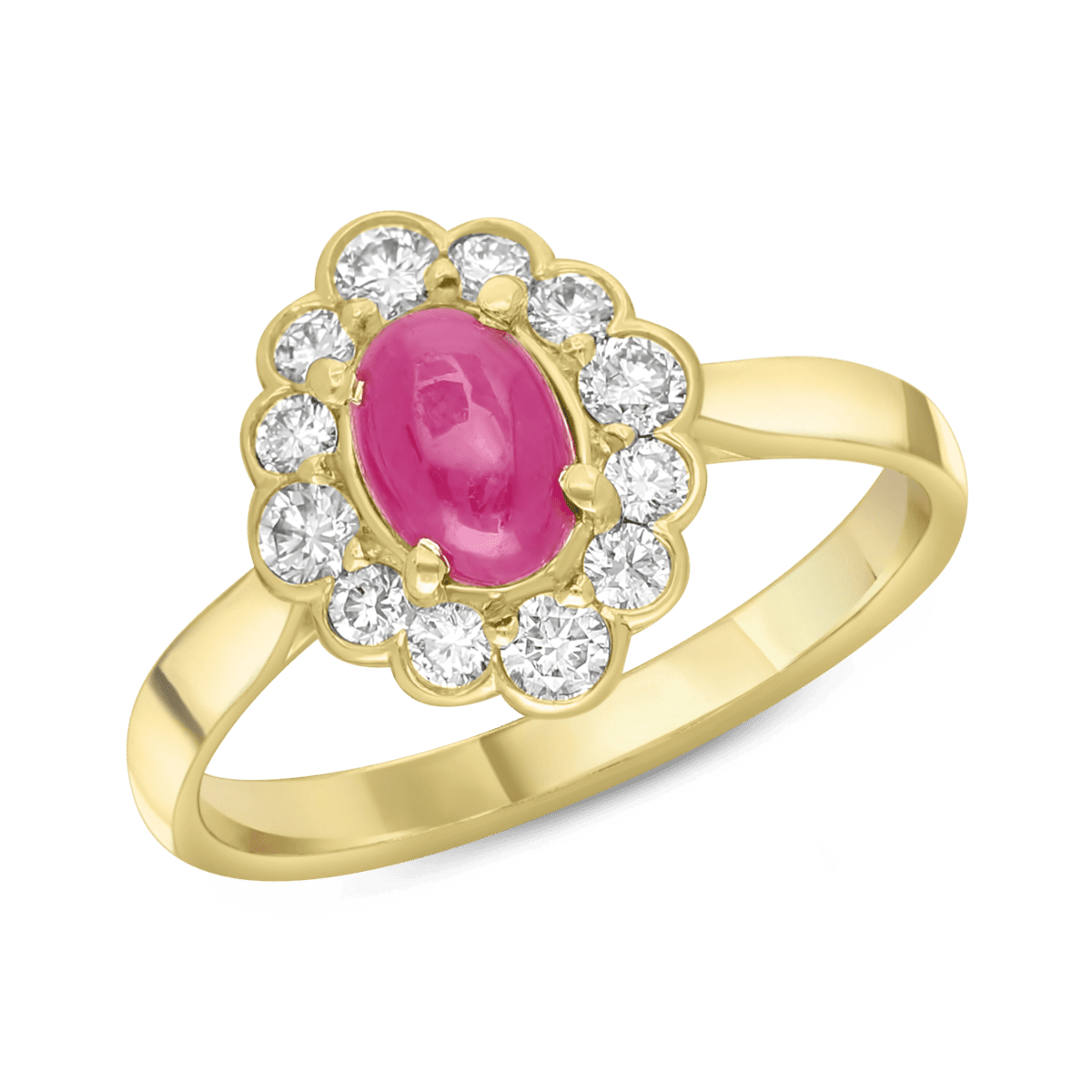 טבעת דיאנה מעוגלת מיוחדת ואצילית משובצת אמרלד ויהלומים 0.36