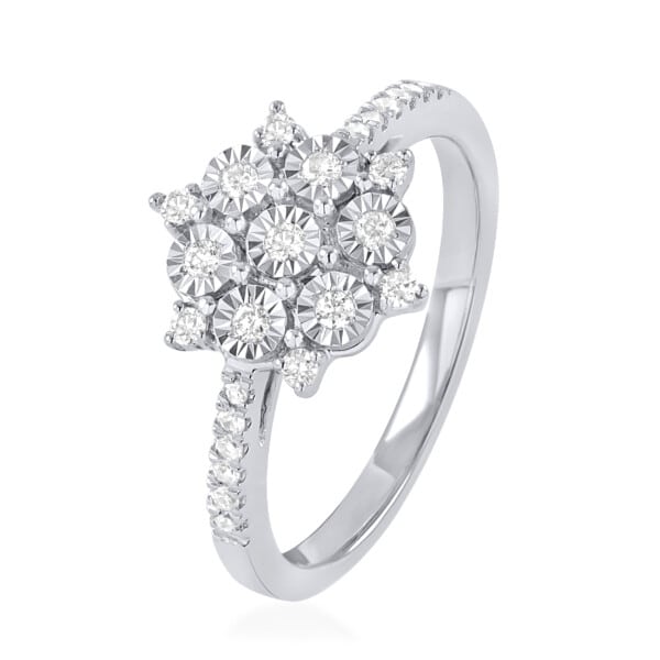 טבעת זהב דקה משובצת יהלומים בצורת פרח