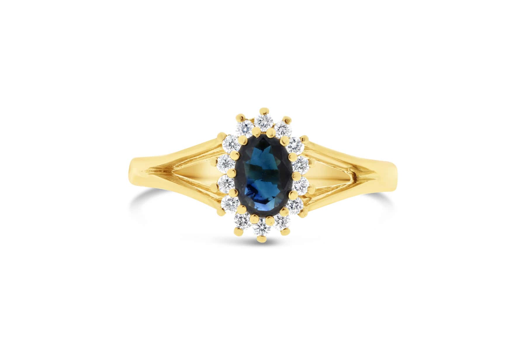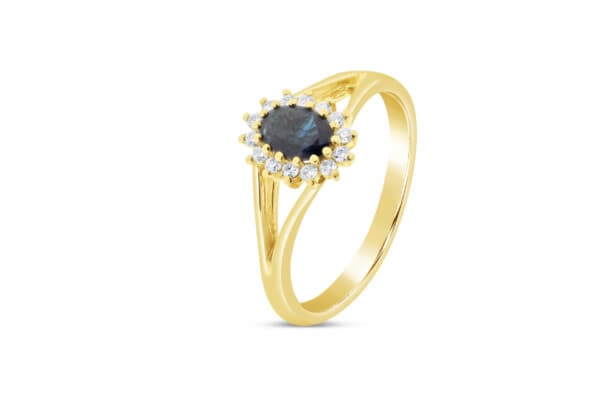 טבעת יפיפייה משובצת ספיר ויהלומים.