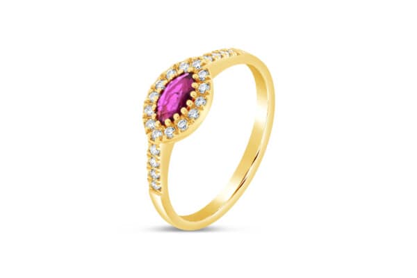 טבעת מיוחדת במינה משובצת יהלומים ורובי